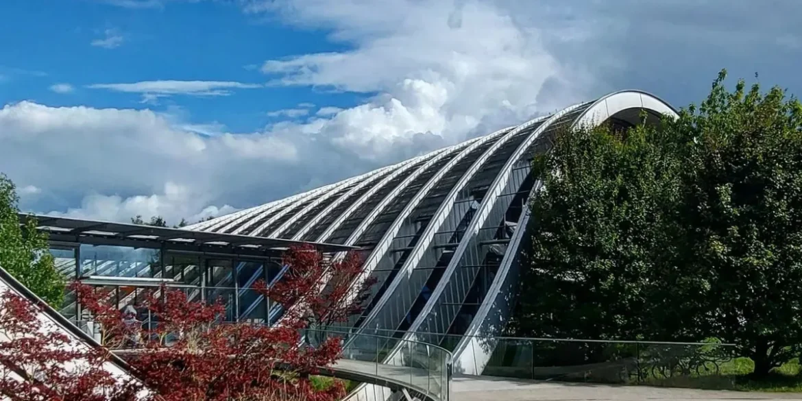 Die Therme Vals, entworfen vom Schweizer Architekten Peter Zumthor, zählt zu den bekanntesten Beispielen moderner Architektur weltweit. Inmitten einer tiefen Alpenschlucht im abgelegenen Dorf Vals gelegen, ist sie direkt in den Fels gehauen und aus lokalem grauen Quarzitstein erbaut.