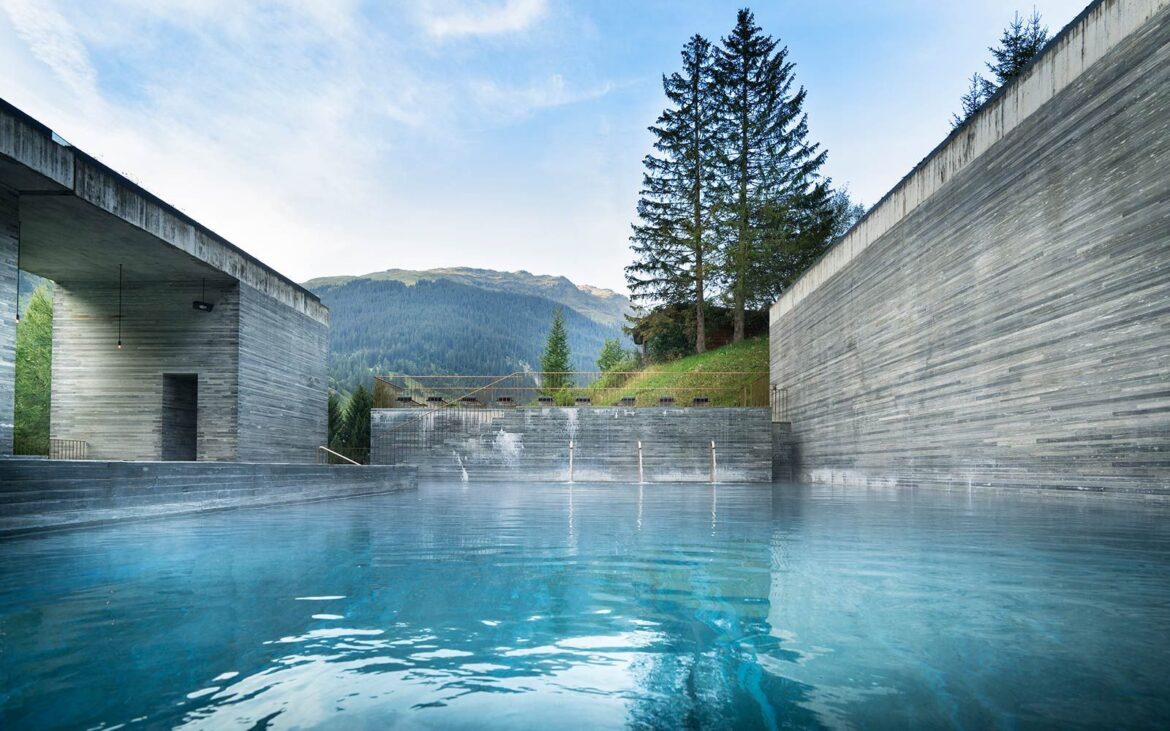 Zumthor verzichtete auf konventionelle Formen: Die Therme bildet ein Labyrinth aus 15 Steinkuben, die teilweise in den Berg eingebettet sind. Das Wasser stammt aus einer Quelle, die die Einheimischen bereits seit der Römerzeit nutzen.